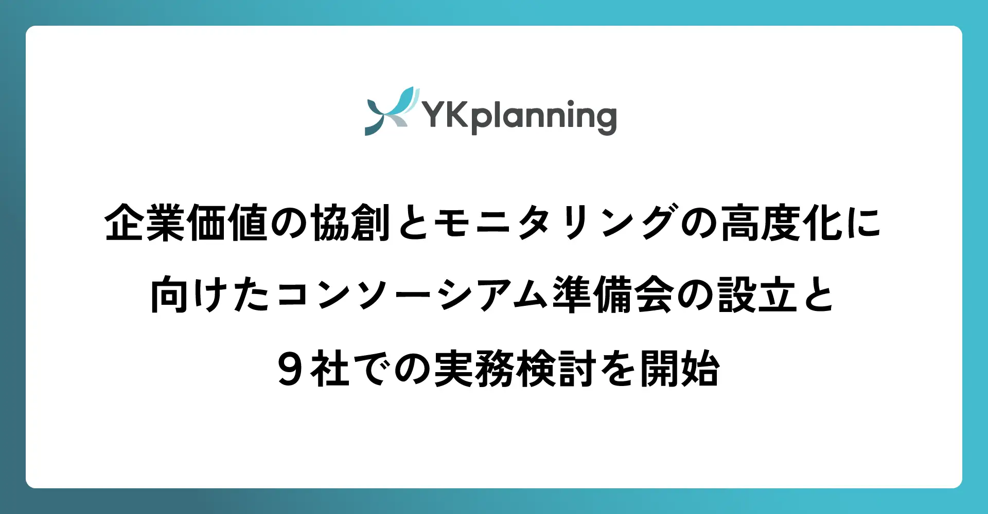 株式会社YKプランニング(所在地:山口県防府市、代表取締役社長:岡本 辰徳)は、中小企業を中心とした「企業価値の可視化」と、企業経営を支援するパートナーが「企業価値の透明性確保と価値の向上」を目指したモニタリングの実践を「ネットワークを通じて持続的に実施する」ことで、地域経済の発展に寄与することを目的としたコンソーシアム準備会(以下、本コンソーシアム)を立ち上げ、会計事務所、システムベンダーなど9社と実務レベルでの検討を開始します。
